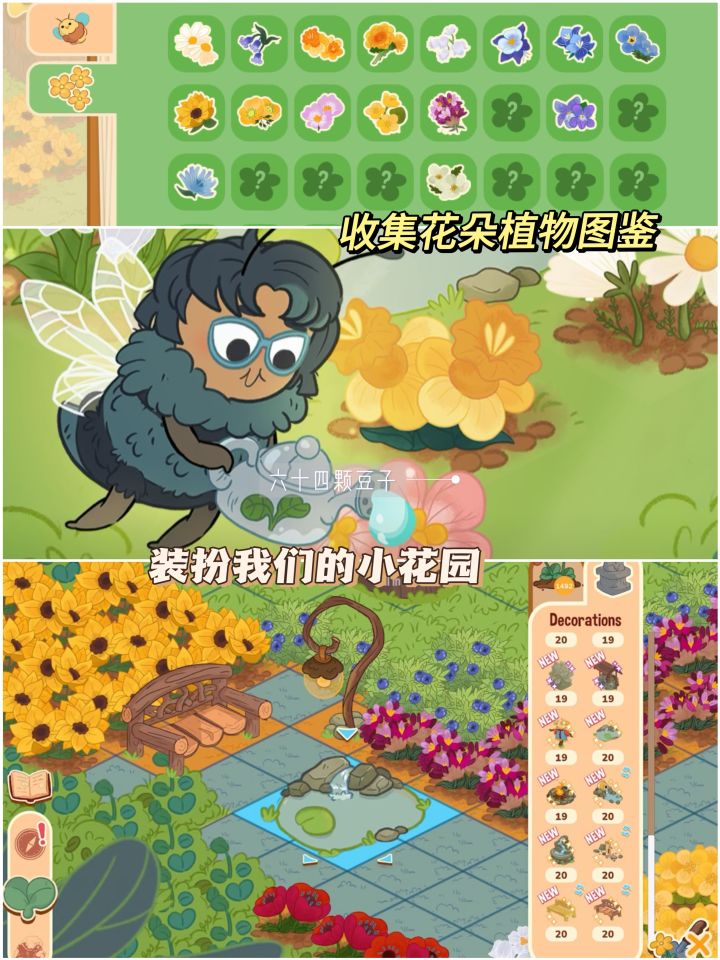✨游戏名字:honey grove设备:🍎IOS/👾Android简介:画风玩法非常可爱,结识小蜜蜂帮我们种地,解锁花朵图鉴,探索地图,还可以装饰自己的小花园。✨游戏名字:黏脚菜园(舒舒服服的小岛时光)设备:👾Android/🖥️PC简介:自由探索小岛,建立自己的小天地,收集玩具家具,还可以和小伙伴联机玩。✨游戏名字:Sumikkogurashi Farm(角落小伙伴的农场生活)设备