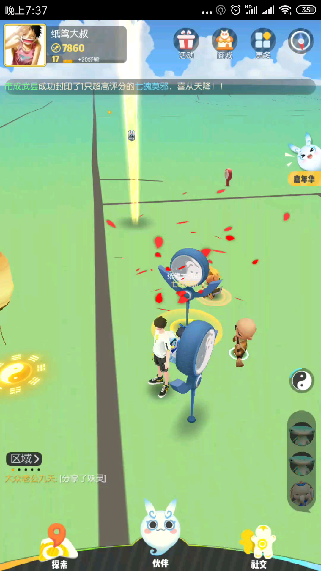 一起来捉妖旋转命中加完美屏幕轨迹示范,首先按住球在屏幕上顺时针画圈圈然后朝顺时针方向屏幕边向上甩出去,当然也可以逆时针操作看你如何更方便,看球的轨迹,初级目标是命中,终极目标是打到妖灵身上的圆圈。最终御灵师恭喜你,你就会传说中的球斗术,对的