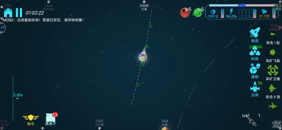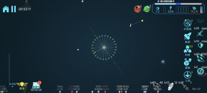 1.咱都知道只能同时认领一个太阳,而太阳引力内没有自家行星环就会碎,如果唯一的行星离开了太阳,重新回到太阳后无法重新造环。2.同一阵营的行星不会相互作用,比如认领一个有无主行星的联盟后行星会坠入恒星,但是八个成员都是同一阵营的联盟行星会因为速度不同堆成一个类似贪吃蛇的形状,但是如果是两个阵营的死星和舰队则可以共用同一轨道(如图),这时候无论怎么加速都脱离不了,只能用光粒把死星炸掉。3.有了恒星