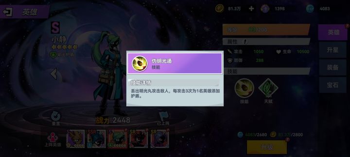 零氪目前卡4-1伤害太渣渣了这战斗方式是前排站的住就能过 前期没啥资源坦克最好上树人,可以给自己加盾 打小怪基本无伤,辅助上小静算是可以全员加盾。防御就是套盾。c选自己有得红卡就行 ,战术啥的选和c匹配的就行 卡关就等明天玩 急不来的