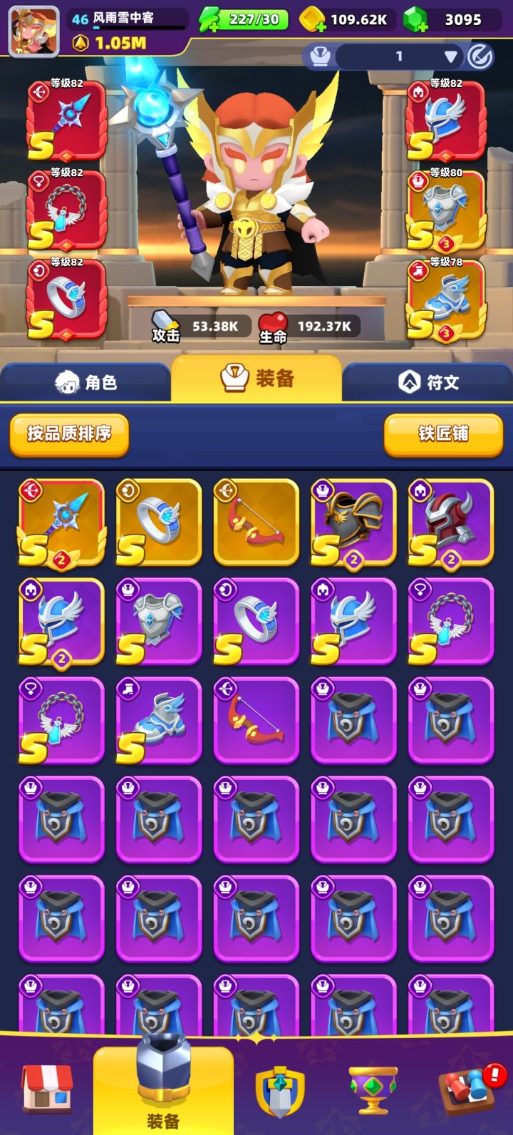 三游戏节奏偏慢,前期其实就是走位游戏。当时刚入坑,确实推不动图。后面钻石没出想要的紫色武器,就换了一个区玩,也算是老萌新知道怪物机制了。前五特别通畅不卡关。。这游戏通关后的换卡有2倍速,卡关可以回去割草。 武器就三大类,每种武器手感天差地别,玩法技能也不同