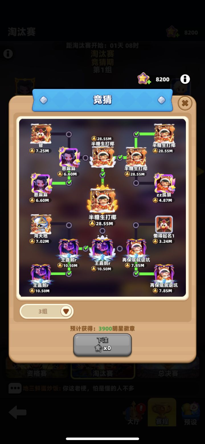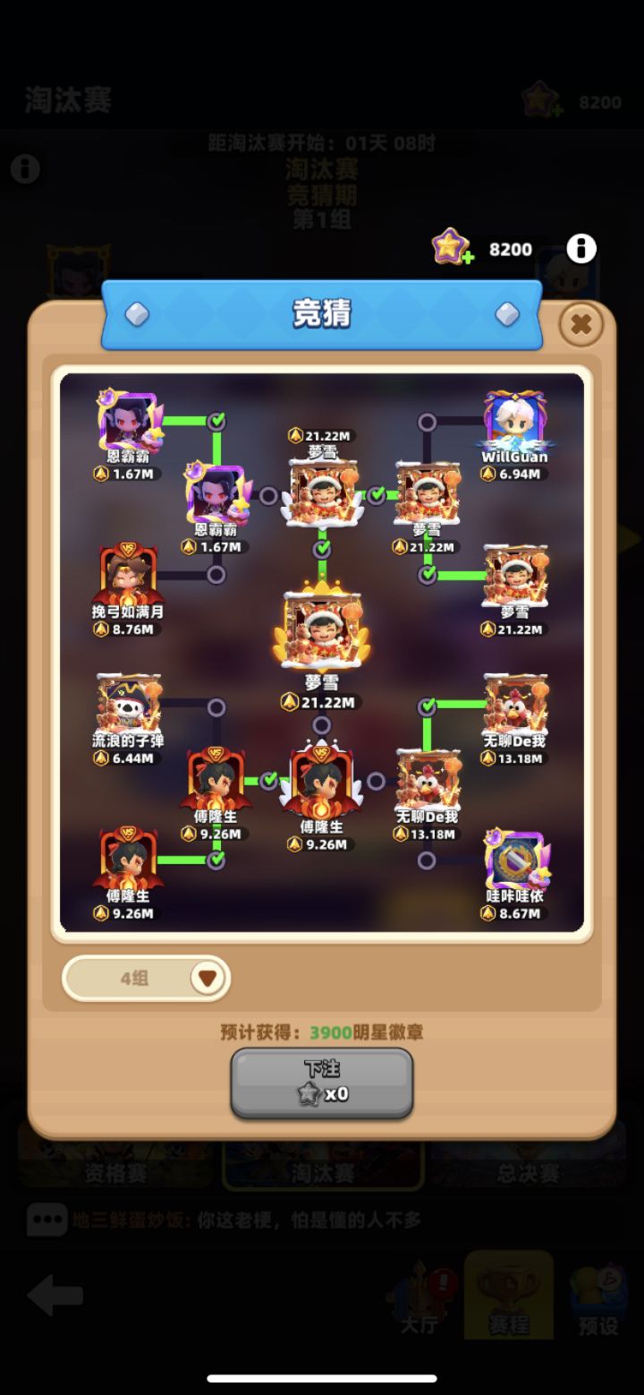 博主根据资格赛64强排名下注。仅供参考。
