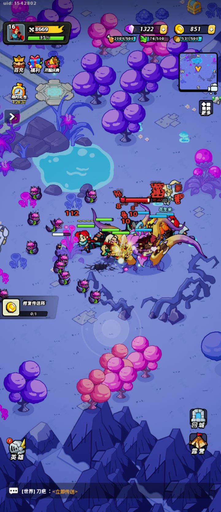 开局有什么用什么,感觉星级比颜色重要,前期首充的国王比较强力,可以回血,伤害不低,后面打算再上个敖广,活动可以获得,其他先用着
