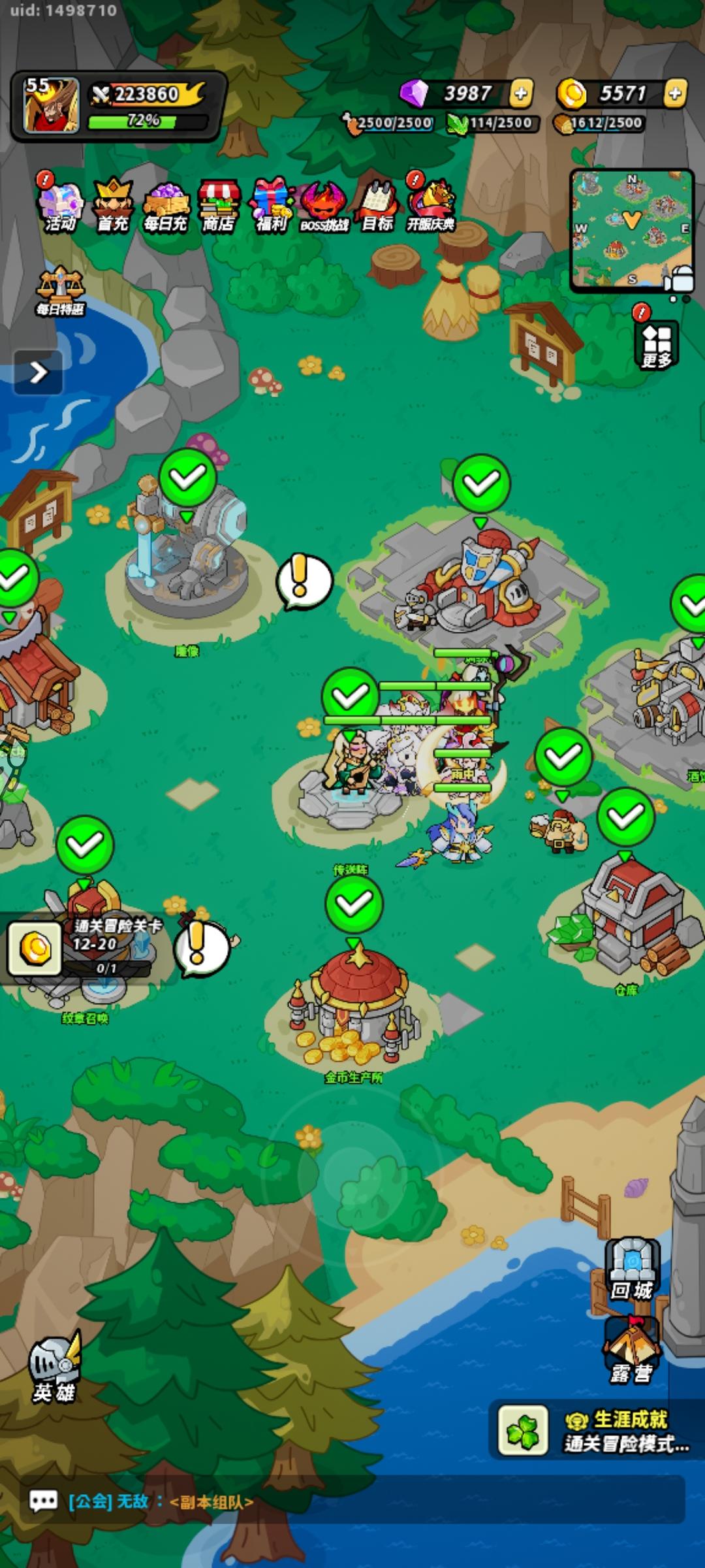 #童话大乱斗攻略 目前个人现在刚玩,对零氪党还是蛮好的,游戏操作简单,随时可以玩,不玩的时候找个地挂机也有收益 游戏开始跟随任务做,然后解锁营地建筑,随着营地建筑的解锁,战斗力发育,游戏功能也逐渐增多, 零氪党也不需要充值,每天日常任务做一下也可以保持战斗力在中游,不会太花时间,挂机就完事了 建议开荒地图的时候有宝箱就开,会有白嫖的钻石,可以解锁永久特权加10%,其次每天签到,获得奖励,角色