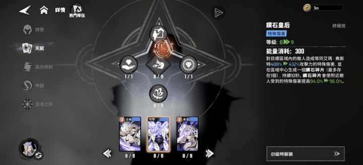 队伍构建:雷神 美队 白皇后雷神:队伍核心 攻速 aoe美队:肉坦 回费 加攻 加防白皇后:回血 提高特殊伤害 降低敌人防御阵容优势:通过雷神2技能普攻传导,快速清理战场。2技能需要4费因此美队可以快速提供回费,从而使2技能效果不断档,白皇后提供回血的同时大招能加强雷神2技能伤害也降低敌人防御。使雷神攻击大大加强。技能主次:雷神主2技能,副大招美队:主大招,副加攻防白皇后:主大招,副