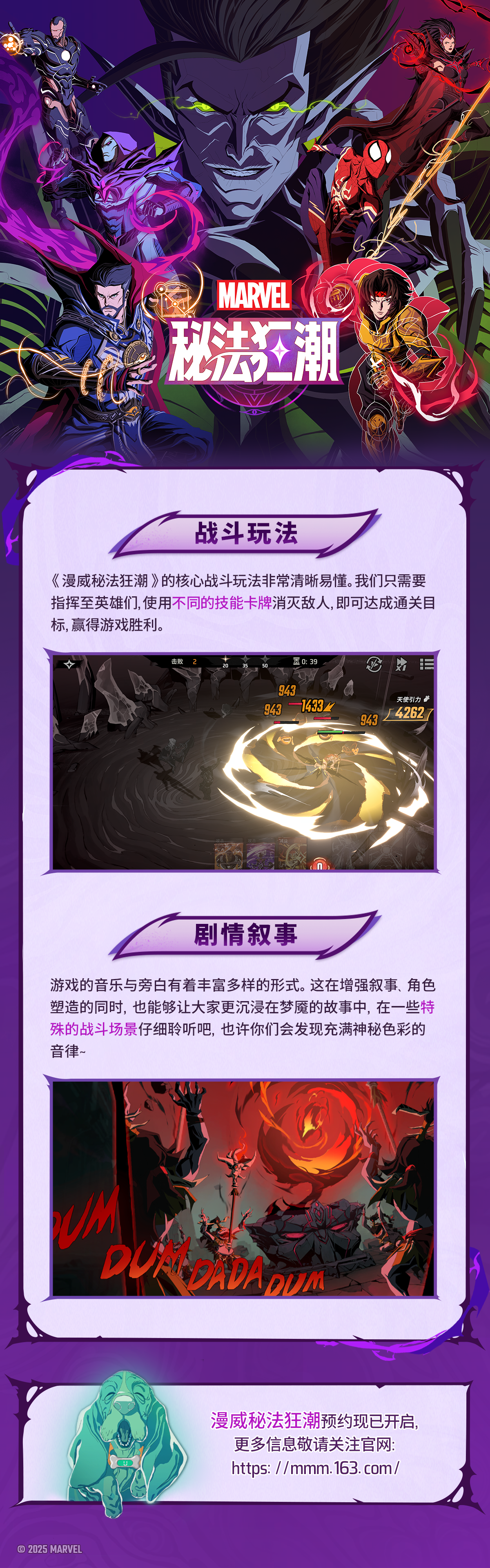 噩梦狂潮席卷现实,超级英雄深陷梦境囹圄。 深入漫威宇宙下的梦境领域,探索前人未至之境,解救被困噩梦的超级英雄,直面广为人知角色内心深处的恐惧和秘密。 全新漫威IP团队战术RPG手游,《漫威秘法狂潮》即将惊艳登场! 团队战术全流程策略覆盖,你的每一步操作都将决定战斗的结果! 游戏预约:https://mmm.163.com/ #漫威秘法狂潮 #漫威 #漫威秘法狂潮预约开启 #2025网易游