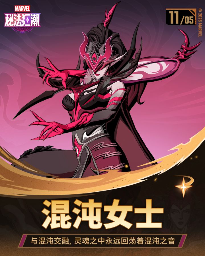 绯红女巫苏醒——混沌主宰再度降临, 魔法铸其形,狂乱缚其魂, 与混沌合一者,混沌永驻汝魂, 踏入这场混沌风暴吧。 —————————————————— 绯红女巫全新制服「混沌女士」,已于11月5日维护后上架制服商店并开启限时折扣,可花费900梦之石解锁!以全新形象加入这场嘉年华狂欢吧,欢迎梦境守卫者们前往商店选购~ ※ 全新1.1版本:「阿斯加德的命运」现已上线 全新英雄洛基、全新主线
