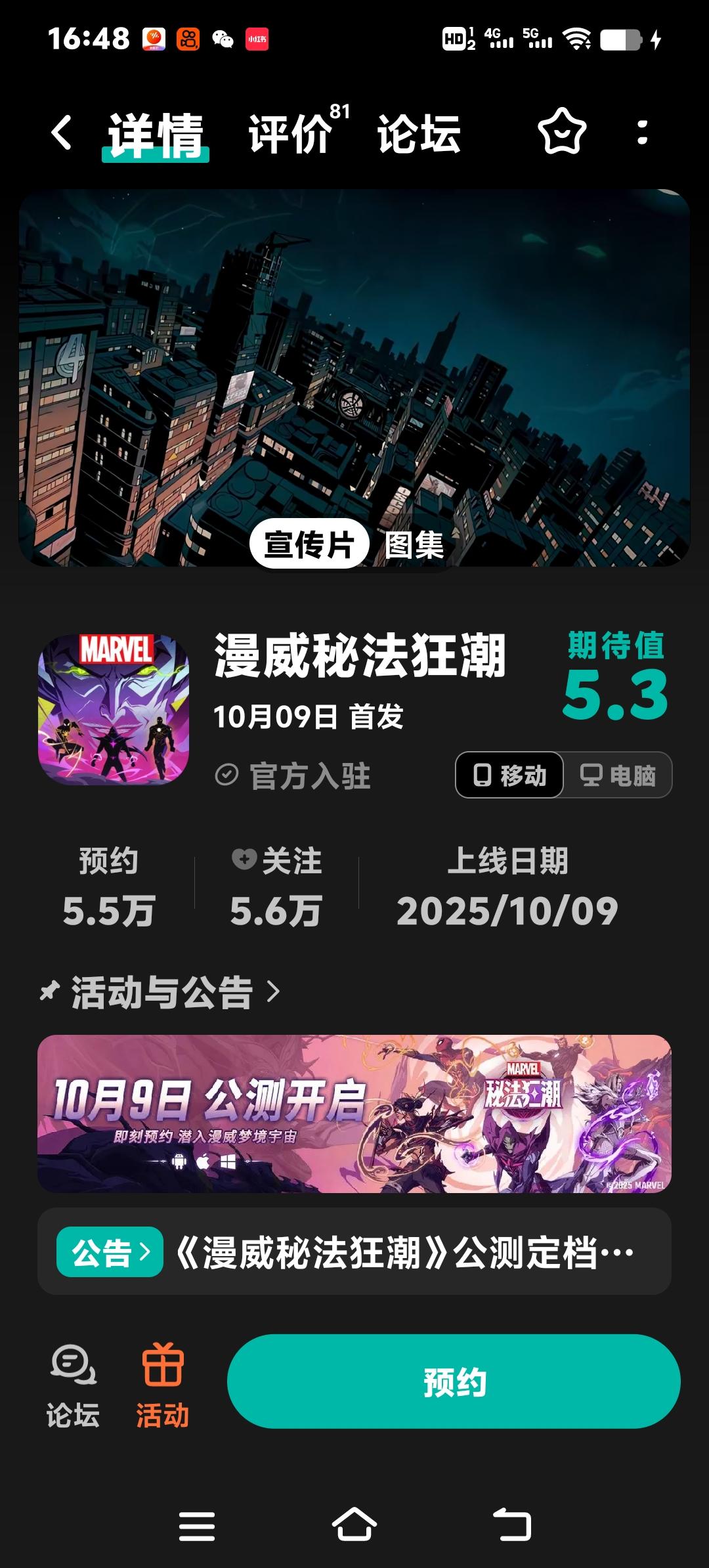公测定档 | 《漫威秘法狂潮》公测定档10月9日 2025年10月9日,《漫威秘法狂潮》将正式上线!奇异博士、绯红女巫、钢铁侠等多位经典漫威英雄将与大家在梦境冒险中并肩作战! “一点魔法,扭转全局” 在梦境世界内,英雄们不仅需要运用能力,巧妙对抗潮水般涌现的梦境入侵者,更需要不断审视自身,超越自我,开拓从“平凡”到“非凡”的英雄之路! 10月9日,让我们深入梦境,挣开枷锁,征服梦魇! ——————