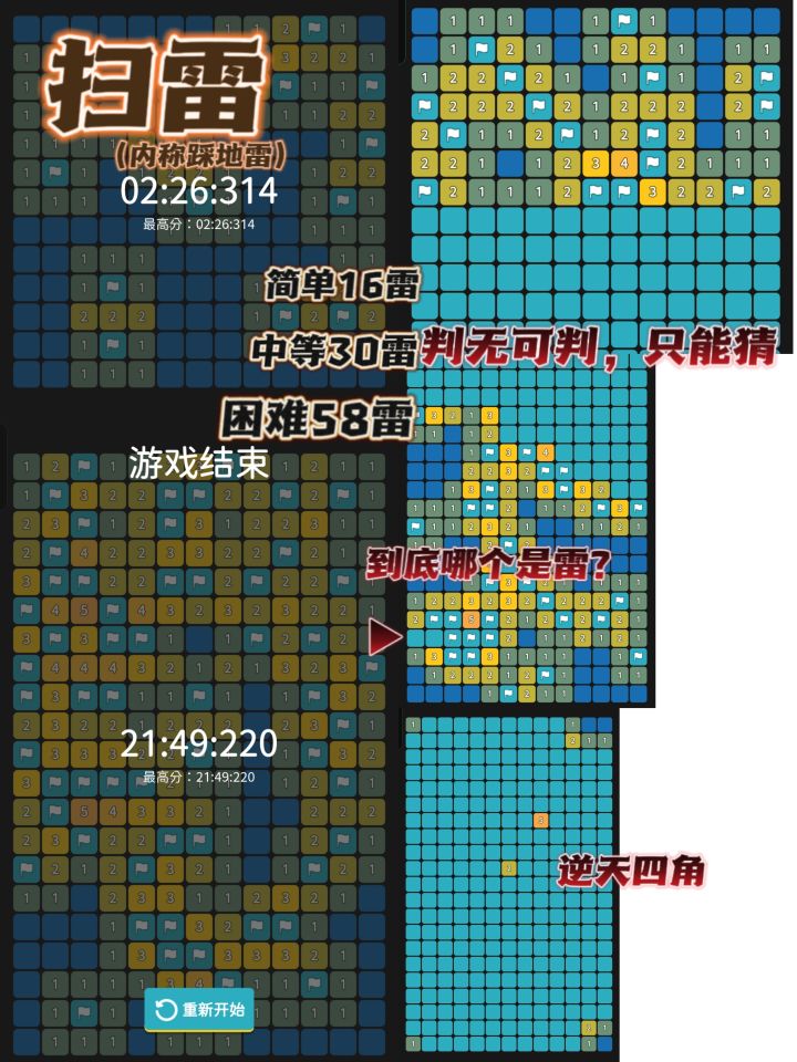 对,它确实是扫雷,却充满了未知性,玩的我是真的难受。