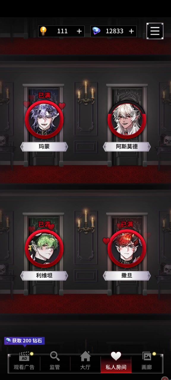 看广告实在是太麻烦了,过了一个结局后没有耐心了,搜另外三个魔王的结局,发现还缺了个阿斯莫德,我来补上~ #地狱之吻 #地狱之吻阿斯莫德