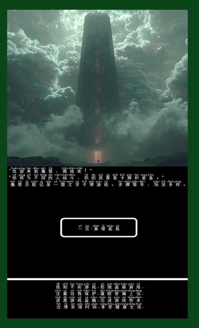 欢迎来到魔塔,挑战者!你将与不同的人战斗,你的武器是卡牌和装备。魔塔历险记是一款文字卡牌游戏。步骤简单,玩法多样。