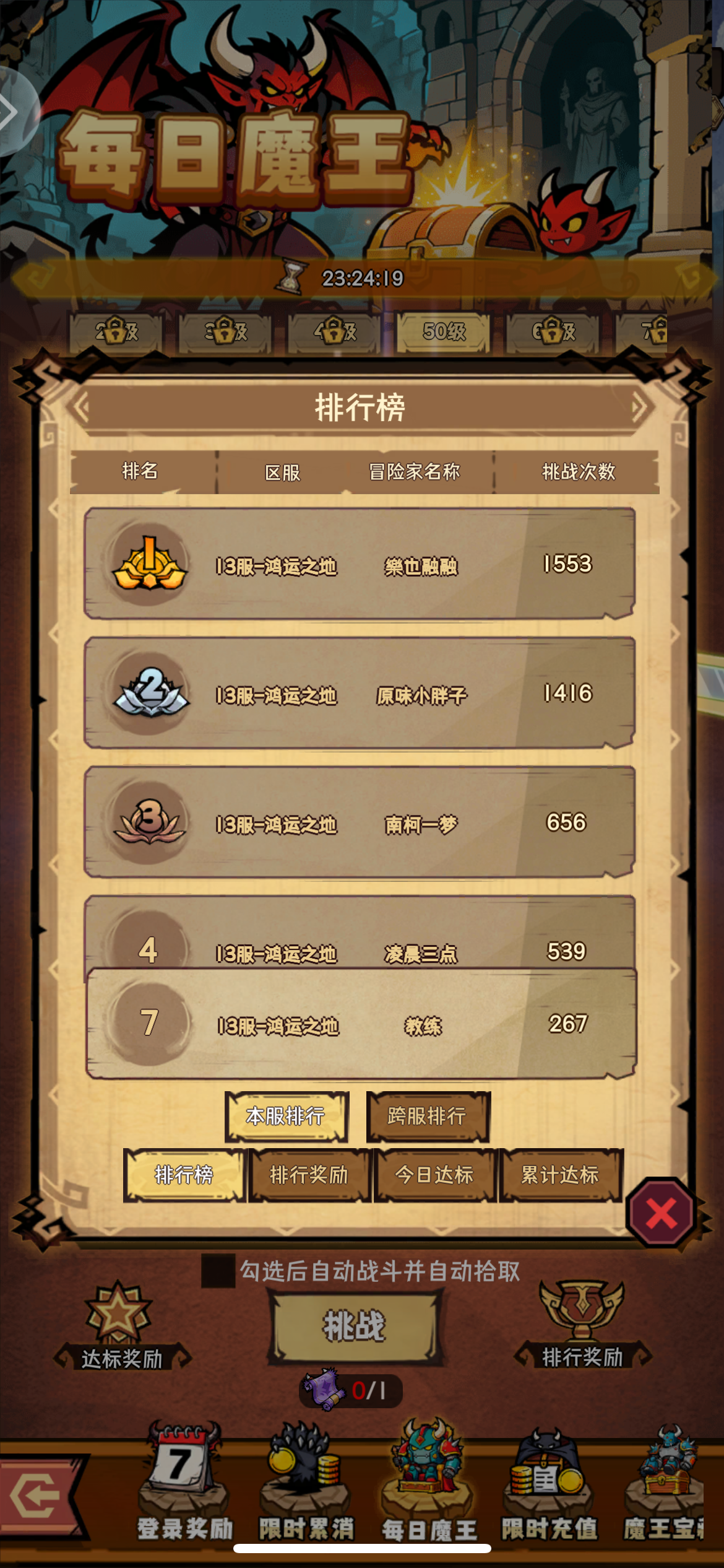 这从40级以后,现在每天上线就等那个离线收获扫荡,扫完之后完全没事干,爬塔也爬不了,闯关也闯不了,其他玩法也是重复那几个,关键是最后人也走了没剩几个,东西也卖不了,也没人买,掉率又低的可怜,然后玩法没玩法,还全是一些充值活动。那玩这游戏的意义是什么?算是玩过这游戏吗?越到后面越来越无聊了。既然你得你搞充值活动,那么玩法也应该跟上啊,现在有什么新玩法吗?一点没有啊,关也推不动,啥也动不了,每天上线领
