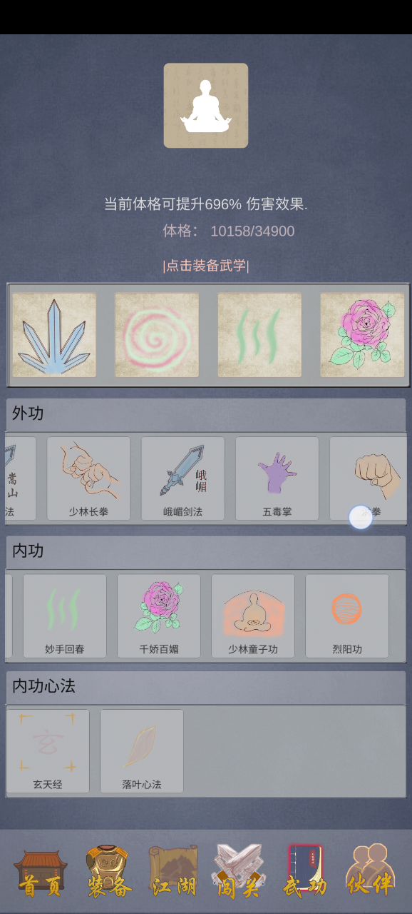 前面就靠着少林童子功和落叶心法,后期就靠多情剑法和玄天经