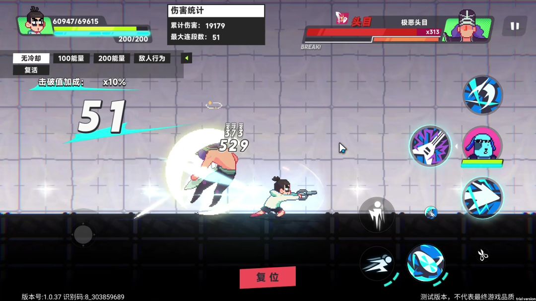 #伍六七暗影交锋TapTap测试版 这个困难模式,最后几关的boss,血条非常厚。 这个时候机甲形态的王子非常好用,因为他的技能可以大大减少boss的气势,是最容易使boss进入脱力状态的角色。 然后我们两个角色,最好是带两个增伤的心法,然后合体大攻击,建议是卡在一半血量之前放两次,这样既可以触发心法的增伤效果,又可以避免掉boss的减伤效果