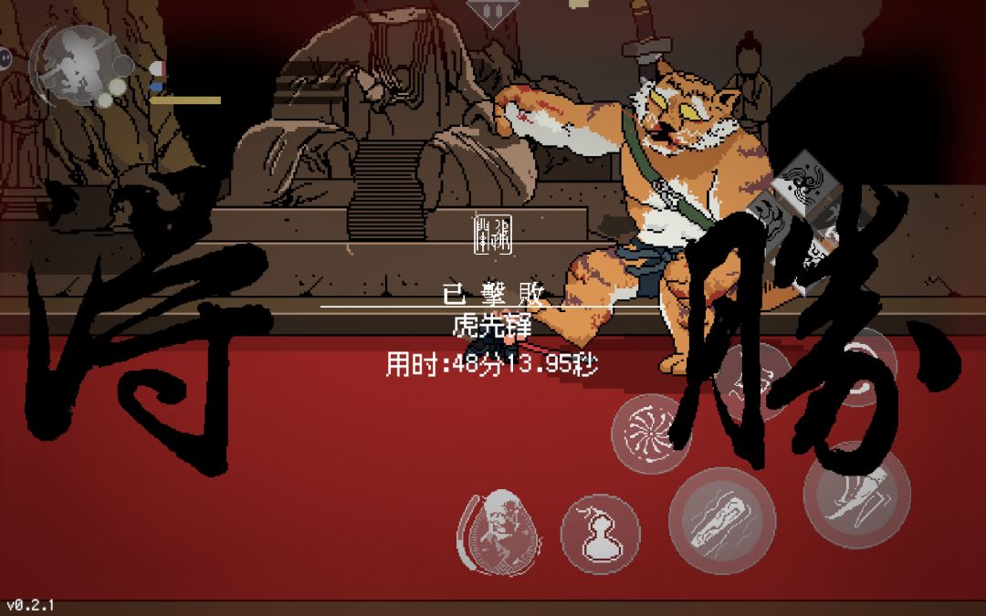 终于通关啦,庆祝庆祝 打虎先锋就是开局定住然后分身平a ,boss解除之后趁boss被分身纠缠多蓄几个重击。期间放和尚砸,然后变成广智补刀#黑神话像素版 #黑神话悟空像素版攻略 #黑神话悟空像素版