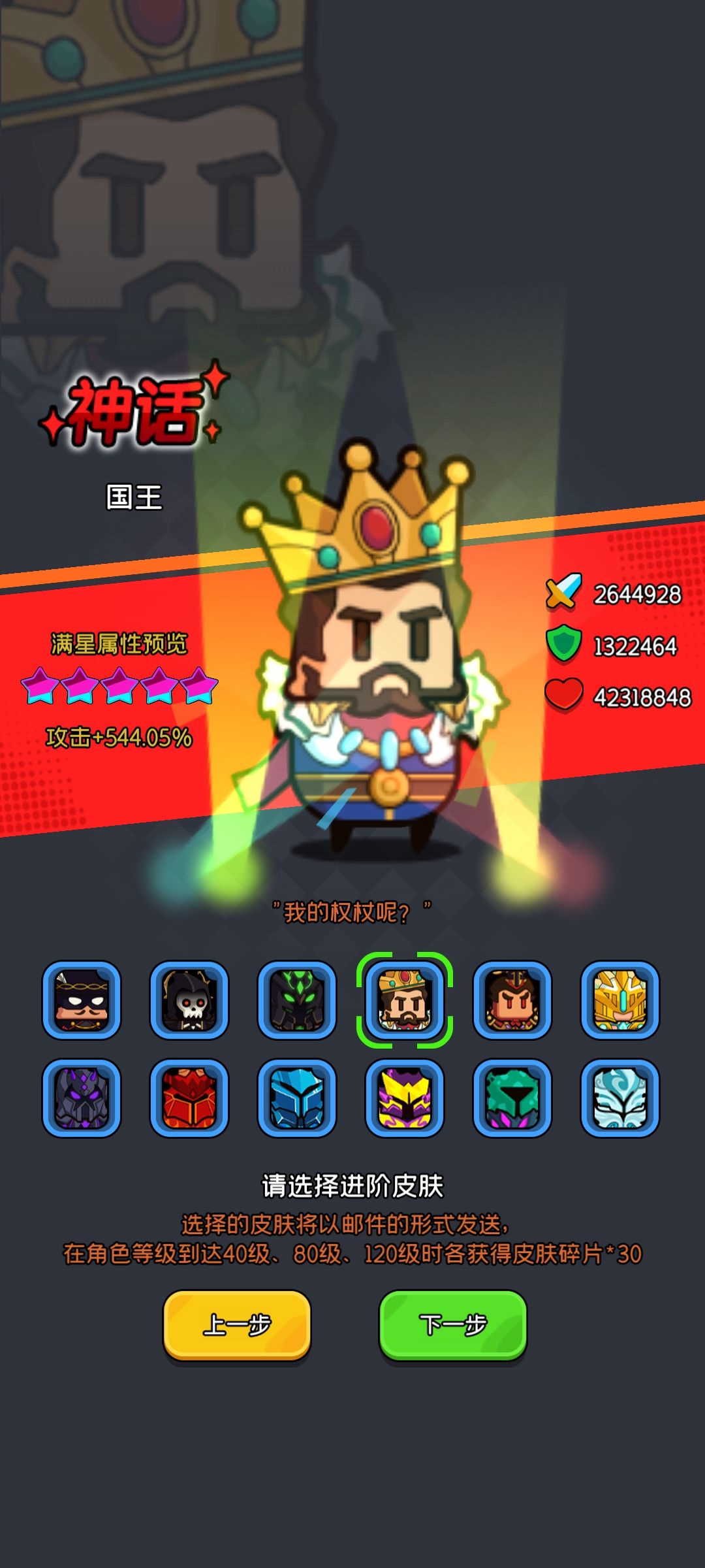 -----开局----- 《皮肤》 开局直接选择国王或者死神,这俩皮肤的收益比非常大,国王前期提供不错的攻击能力和皮肤契约加成,死神是唯一可以忽视防御的皮肤,中后期怪物防御会变得非常高,破甲是必须堆到80%以上,如果喜欢玩菜刀流必选死神,ps:死神是付费皮肤,初始选择的话直接白嫖128 《技能》 这个游戏的技能比较特殊,需要玩家自己组合 ,A+B+C组合出一个技能,可以打散重新排列出新的技能,所