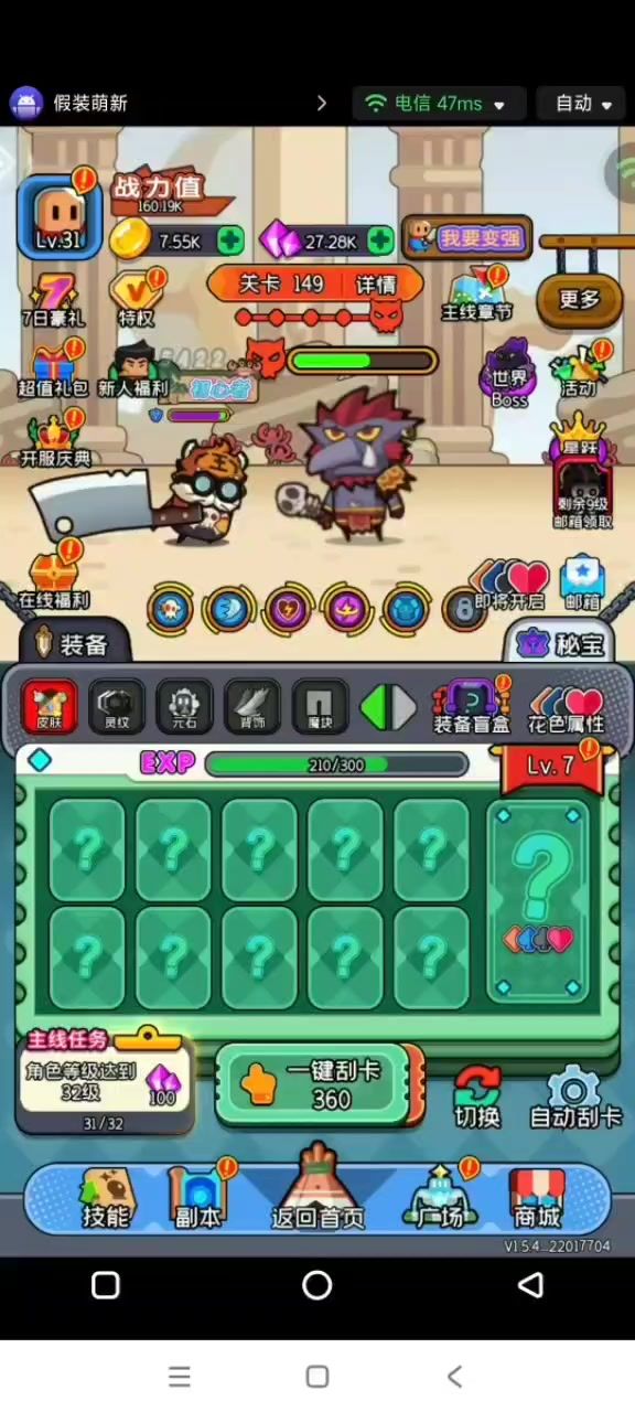 先晒一下主号,不知不觉玩了几个月,这游戏乍一看粗糙,玩下去还行,后期收菜居然挺上头。 不得不说这游戏对新人不太友好,一堆氪金提示容易吓跑新手,其实,零氪玩起来还挺舒服的。 为了体验和展示豹子头的快乐,我也开个零氪小号,记录一下流水账。 规则: 1.不定期上线操作,视频记录小号成长 2.其余时间云手机在线挂机推图、自动刮卡 3.云手机挂机期间可能随手收个菜:a.领取在线奖励刮刮卡;b.领取吃鸡宝箱;