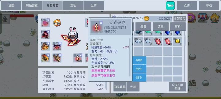 : 装备数值差距和词条数值差距低,也没有设置品级保底数值,还有后期爆率极低劝退了我,越刷越没有成就感,腻了,作者也没有考虑改善这些问题,提意见也主打一个已读不回,更新也只听取他口中什么大佬的意见,更新方向也成了一种定制,具体是什么大佬咱也不知道,游戏完全成了大佬的个人游戏