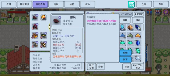 经过不断的刷boos不断的成长变强从一开始的普通到困难到噩梦再到地狱每天签到刷怪升级不断的更换装备从一开始的不会玩不知道专属装备一开始没伤害直到群里的大佬告诉我要穿专属装备堆穿透没有穿透破不了防我就开始堆穿透直到有一天穿透到了90数据瞬间爆炸消灭地狱元素三从堆穿透开始直接让元素破防强大的90穿透宠物直接让boos破防主角的穿透也是90直接无视防御从一开始的35秒到后面