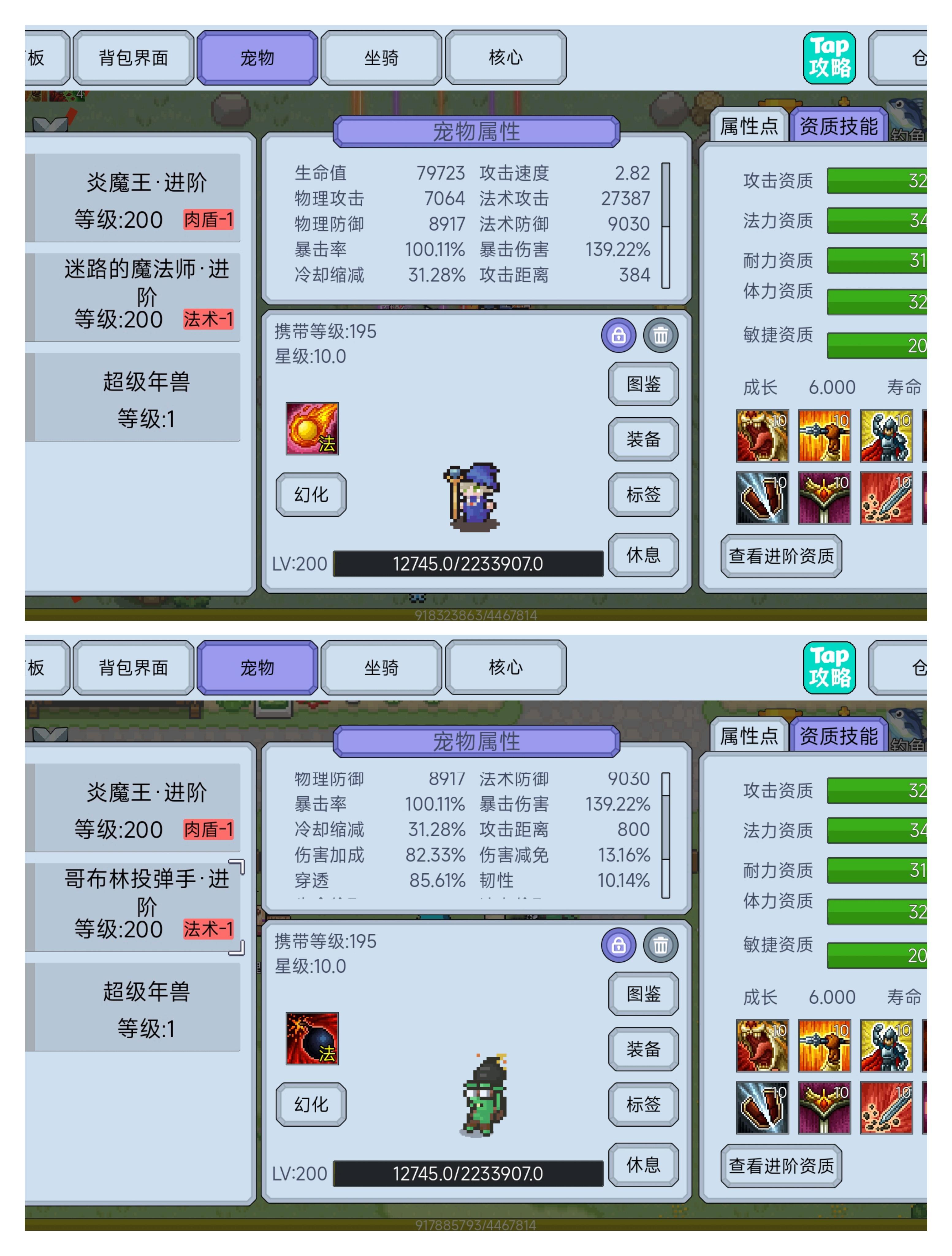 3件首饰还没有升级(全10级),衣服鞋子满级了(190),就是打起来慢一点而已。宠物全靠技能回血(嗜血+会心一击,真伤回血真猛),有法伤转成物伤,基本一下就是1000~2000回血(会心一击+暴击回血更高),改天试试把体力换成敏捷,攻速增加后不知道宠物能不能把血回满上来