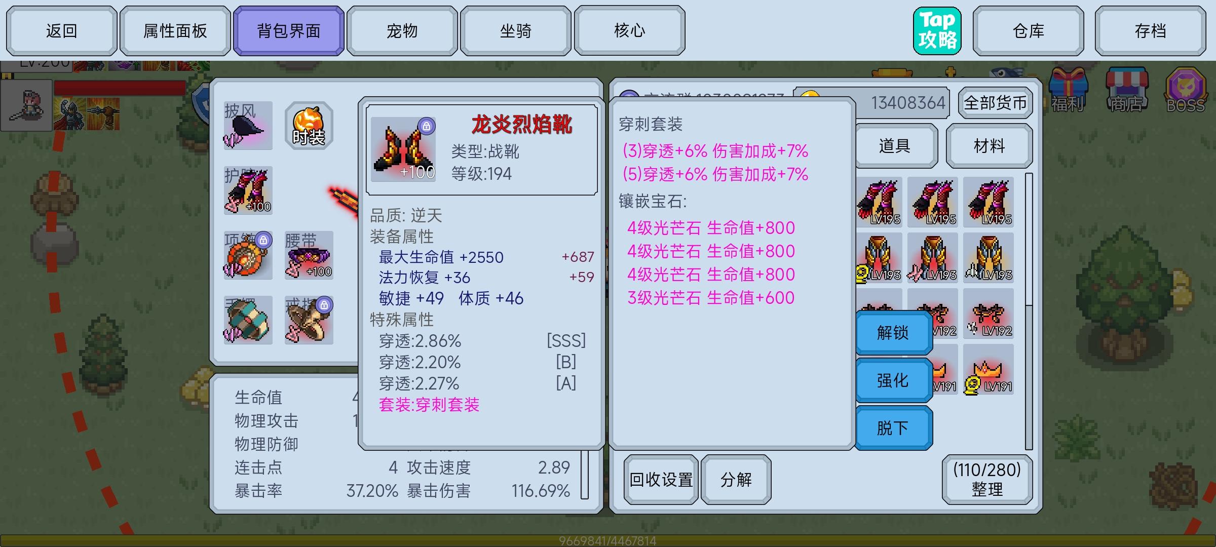 3件首饰还没有升级(全10级),衣服鞋子满级了(190),就是打起来慢一点而已。宠物全靠技能回血(嗜血+会心一击,真伤回血真猛),有法伤转成物伤,基本一下就是1000~2000回血(会心一击+暴击回血更高),改天试试把体力换成敏捷,攻速增加后不知道宠物能不能把血回满上来