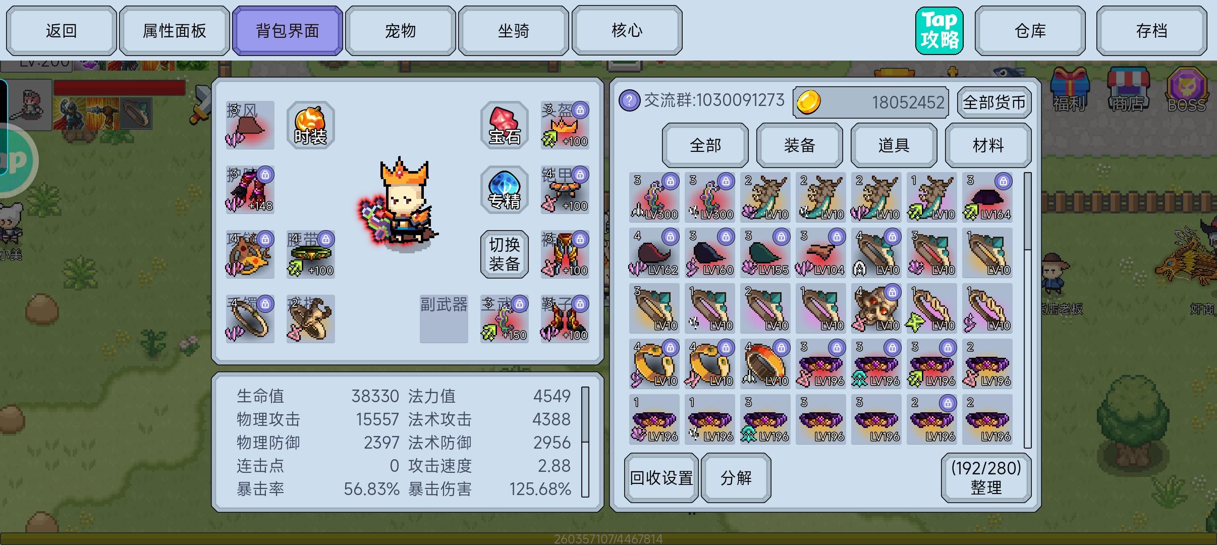 3件首饰还没有升级(全10级),衣服鞋子满级了(190),就是打起来慢一点而已。宠物全靠技能回血(嗜血+会心一击,真伤回血真猛),有法伤转成物伤,基本一下就是1000~2000回血(会心一击+暴击回血更高),改天试试把体力换成敏捷,攻速增加后不知道宠物能不能把血回满上来