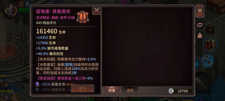 用的驭电者套,主要思路可以利用戒指,耳坠,项链,箭矢将暗影爆发冷却堆到90%以上(应该还可以更高),大约3秒刷新大招,其次是帽子词条(连续放电)和手套(暗影救赎)词条,可以达到快速刷图和控制boss的效果,配合裤子(眩晕延伸)还有衣服(冰箭爆发)可以连续控制boss达到稳定输出,暗影救赎词条太好用了,即可以回血,又可以触发帽子和衣服的词条,其他词条刷到什么就用什么了,耳坠和项链可以用回血,加点因为