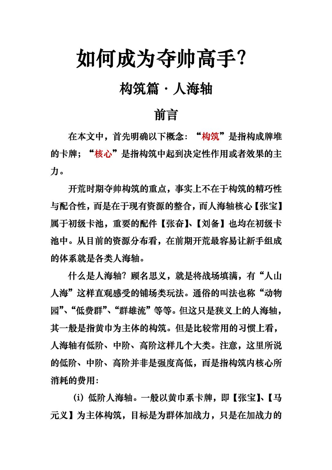 目前专栏计划: 专栏名称:如何成为夺帅高手 专栏内容: 1 游戏卡组构筑 备注:此部分随卡池更新而更新 1.1 卡组综述 1.2 新手期与过渡期卡组 1.3 成品卡组 1.3.1 竞技向卡组 1.3.2 娱乐向卡组 2 游戏基本思路 2.1 游戏内 2.1.1 combo介绍 2.1.2 牌理 2.1.3 意识 2.2 游戏外 2.2.1 卡组构筑理念 2.3 活动系统 备注:随活动更新而更新 3