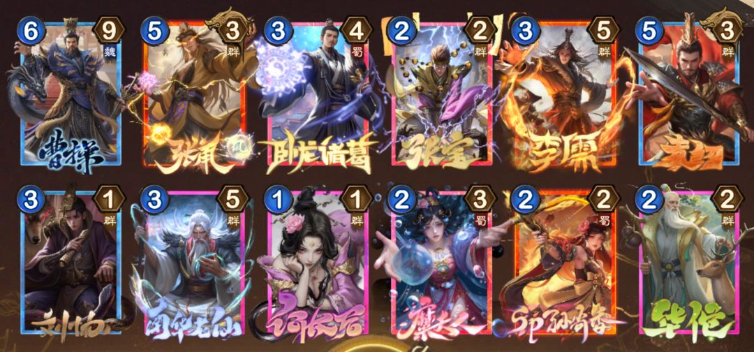 群铺场是大多数新手入门的第一套足够强力的卡组,具有点数充足,卡位灵活,易于上手的特点,非常适合在开荒期使用。 同时,群雄势力在游戏中又是数量最多的一个类别,随着日后游戏更新,更多群武将的加入,群势力卡组的搭配将会不断丰富。 这次测试最后一天,把牌库的卡组扫过一遍,回想起来还是这套群铺场卡组用起来最舒适,进可在面对太史慈这类卡组时单攻一路,退可三路齐出解决大多数问题,下面就讲讲某些单卡的作用和取舍,
