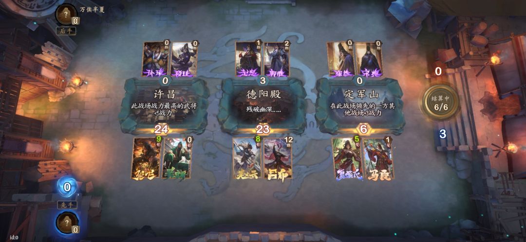 #夺帅攻略 先后分别代指周瑜和徐晃。二者效果恰好相反,前者领先加攻,后者落后加攻。搭配上声东击西奇兵,在前几回合往往能建立起巨大的战力优势,以达到无限滚雪球的目的。 同时周瑜的独特机制,会使得绝大部分人去将战力牌打在周瑜所在区域,此时我们可以打下识阵牌,来更容易的触发识阵效果。 具体打法如下。 第一回合拍乐进,第二回合可以选择将周瑜放在乐进一路来滚雪球。假如徐晃也上手,则可以在乐进该路