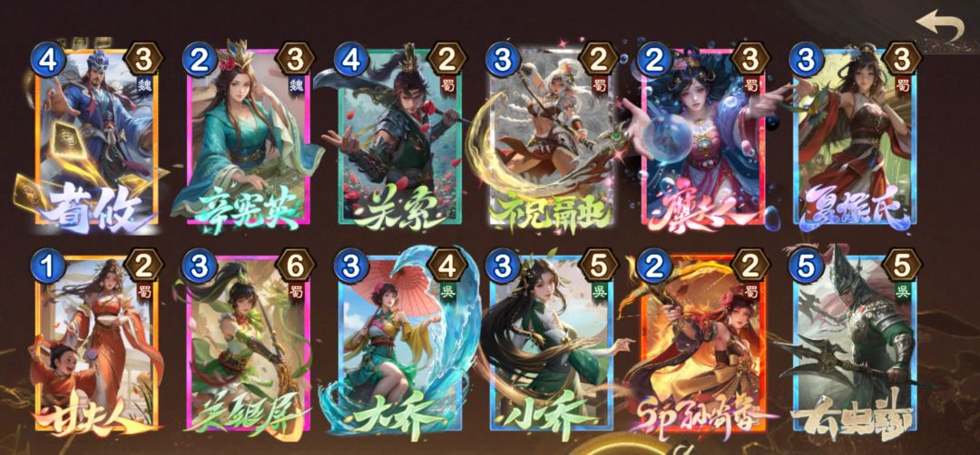 #夺帅攻略 该卡组核心思路有两。 第一是通过程昱徐晃戏子构筑成落后流铁三角,源源不断的为魏国棋子提供战力。最终通过sp孙尚香➕曹纯的组合,释放出四只甚至六只虎豹骑填满场地,终结游戏。 第二,可以通过南华老仙来进行跳费在前期打出高费卡(曹纯或曹操),具体拍谁主要取决于所选奇兵以及上手高费卡。开局拿了双管,则可以选择拍曹操或者关羽进行复制,获得一个低费锁定大哥,开局拿了卷土重来可以考虑下曹纯,