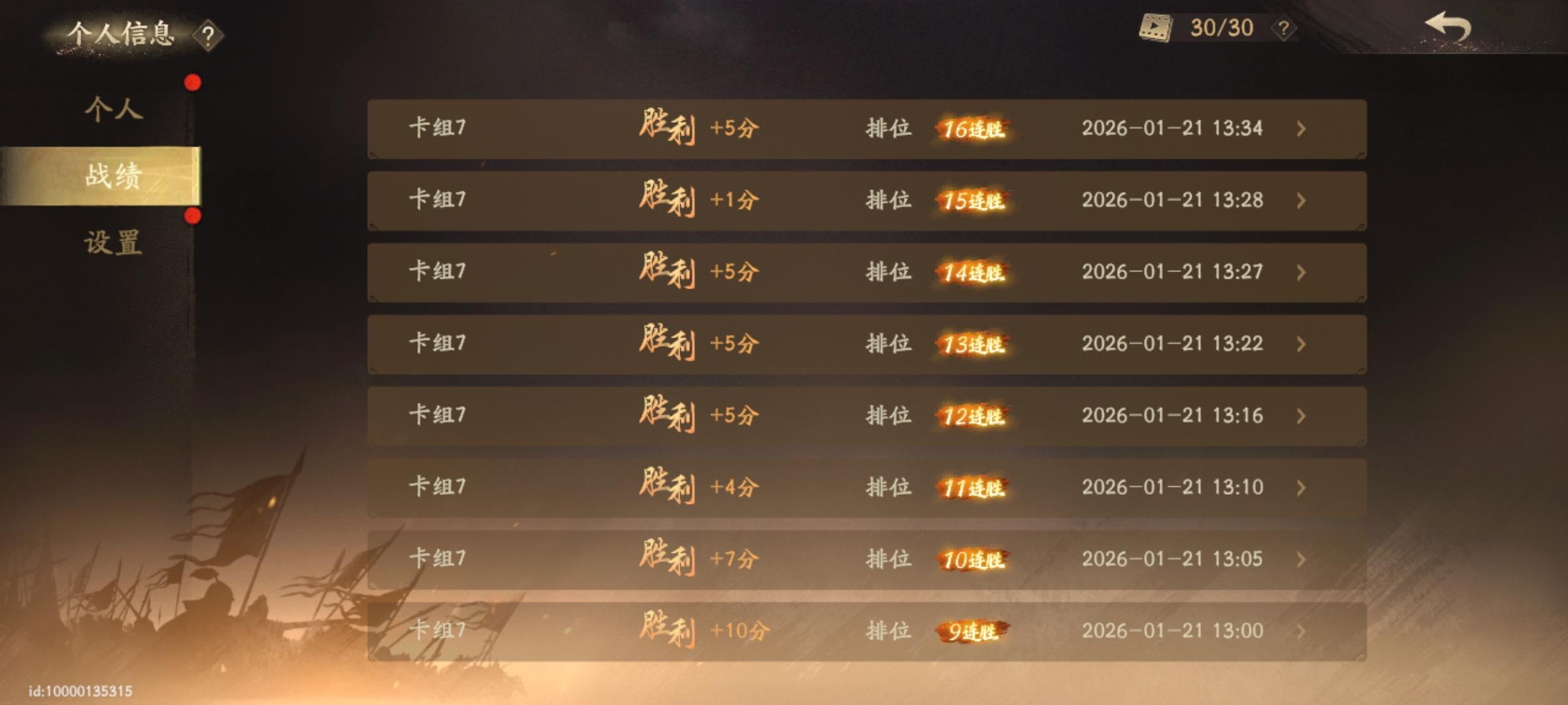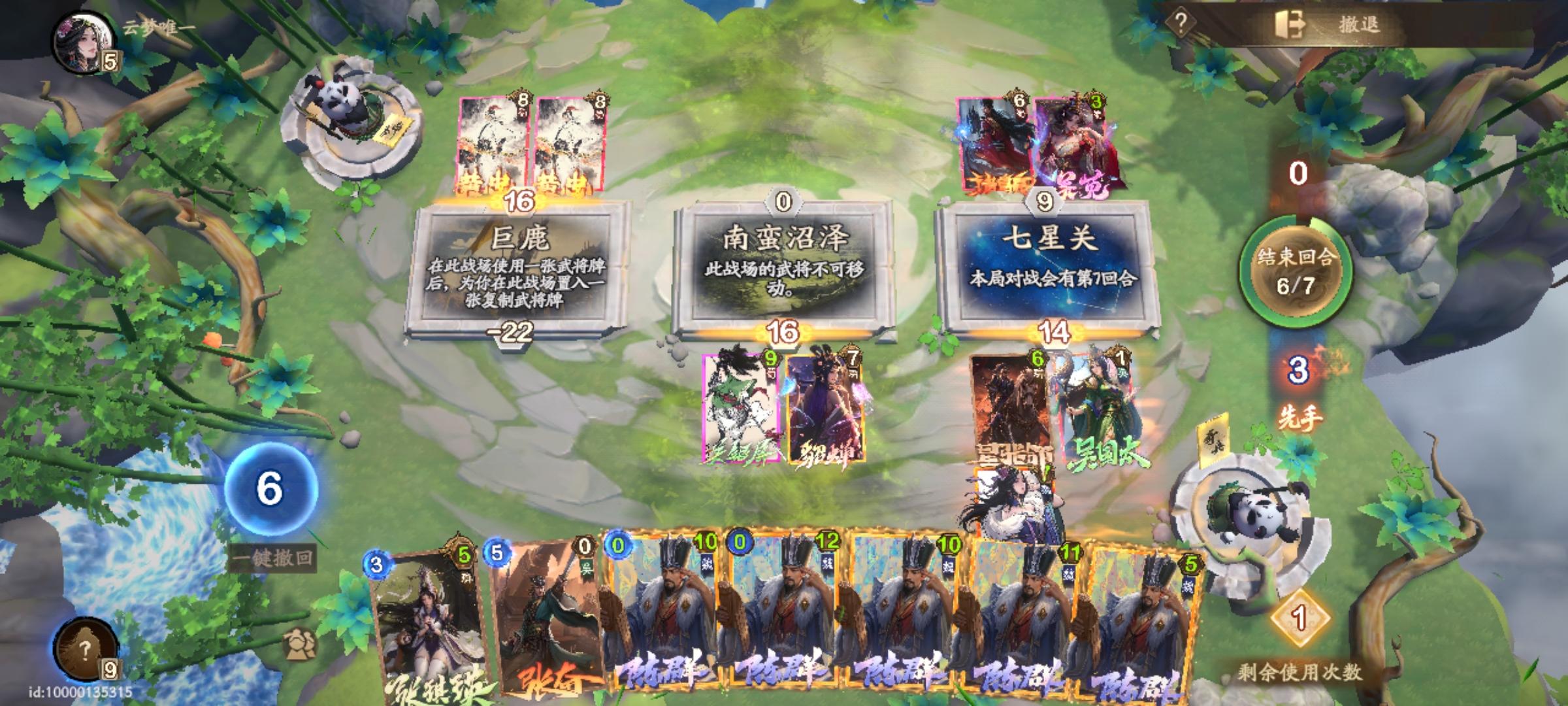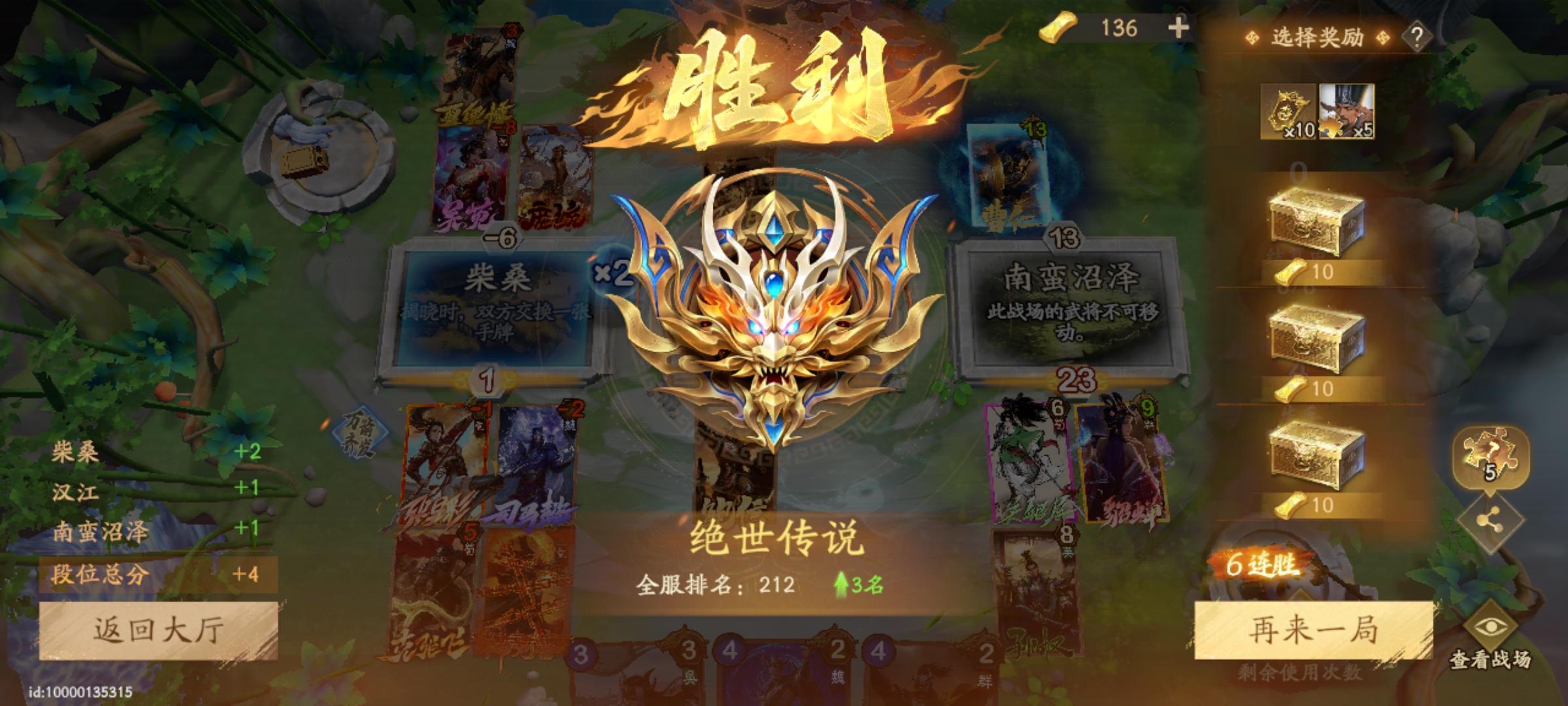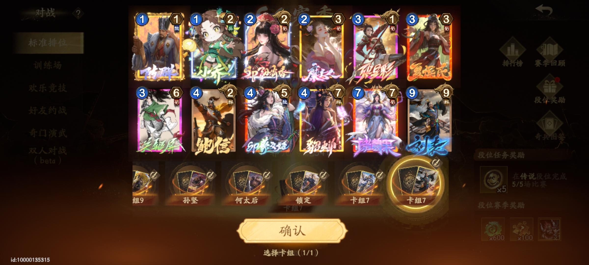 开服失望透顶千场49%胜率的菜鸡,弃坑停氪几个月,也能一波连胜上传说了。该说不说,刘表出的是良心的,这游戏花得最值的一次。可玩性高,强度又有,造价也低。仅需要刘表+鲍信+诸葛果。蔡文姬关银屏,有啥强势女将替换上去就行。与其说看卡组,更多还是看来牌操作。前期1-2费不卡过牌的情况下别乱上低费卡,这套能量还是挺充裕的。这里上了陈群,主要是前期可以补1-2费的真空期,而且0费的识阵爽得很,也可以配合张星
