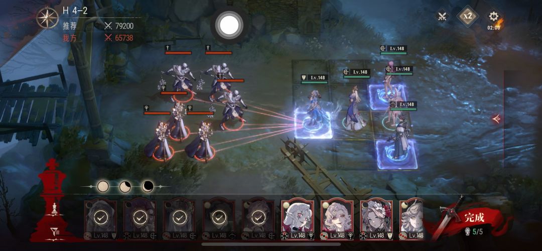 没盾没奶,你就玩吧,蒜头骑士别单上跟盾绑定的,这三带个半月和满月输出随便打 4-7通关简言:就先打上边那俩法师,干死基本就过了