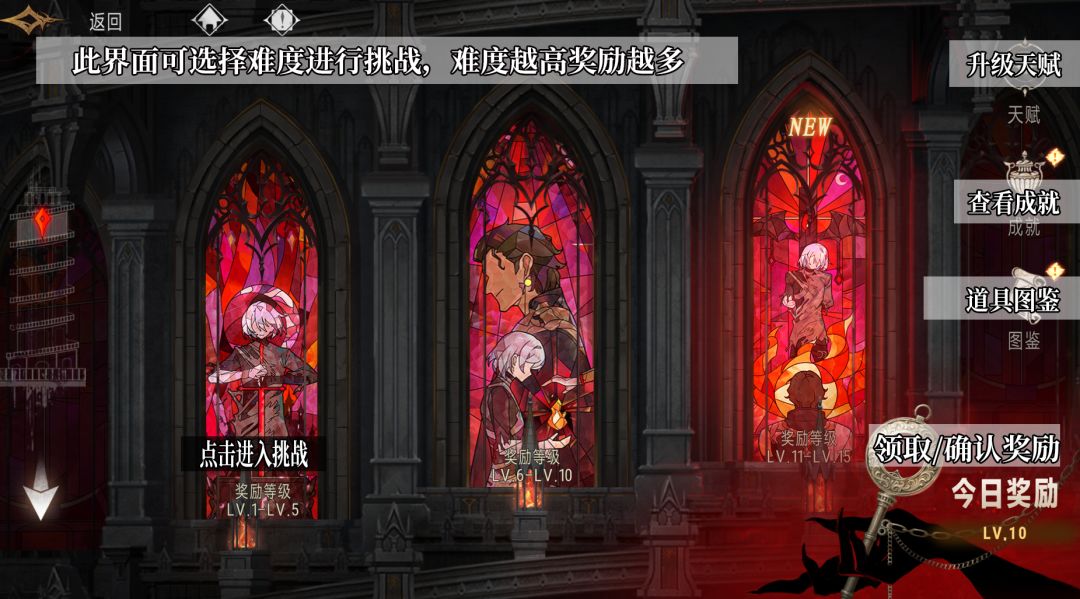 在《银与绯》中,随着主线关卡的推进会逐步解锁相应的玩法。今天给大家整理一份各玩法开启条件清单,帮助大家更好的了解游戏。 一、主要玩法 1、初拥:剧情1-2解锁,可通过抽卡获取眷属 2、时记塔楼:剧情1-4解锁,塔防+背包乱斗玩法,可获取技能升级资源 3、邮箱:剧情1-5解锁,可获取各项奖励 4、古堡:剧情2-6解锁,可参与各种日常玩法,部分房间要推进主线解锁 5、盈月贡礼:剧情2-6解锁,基于关卡