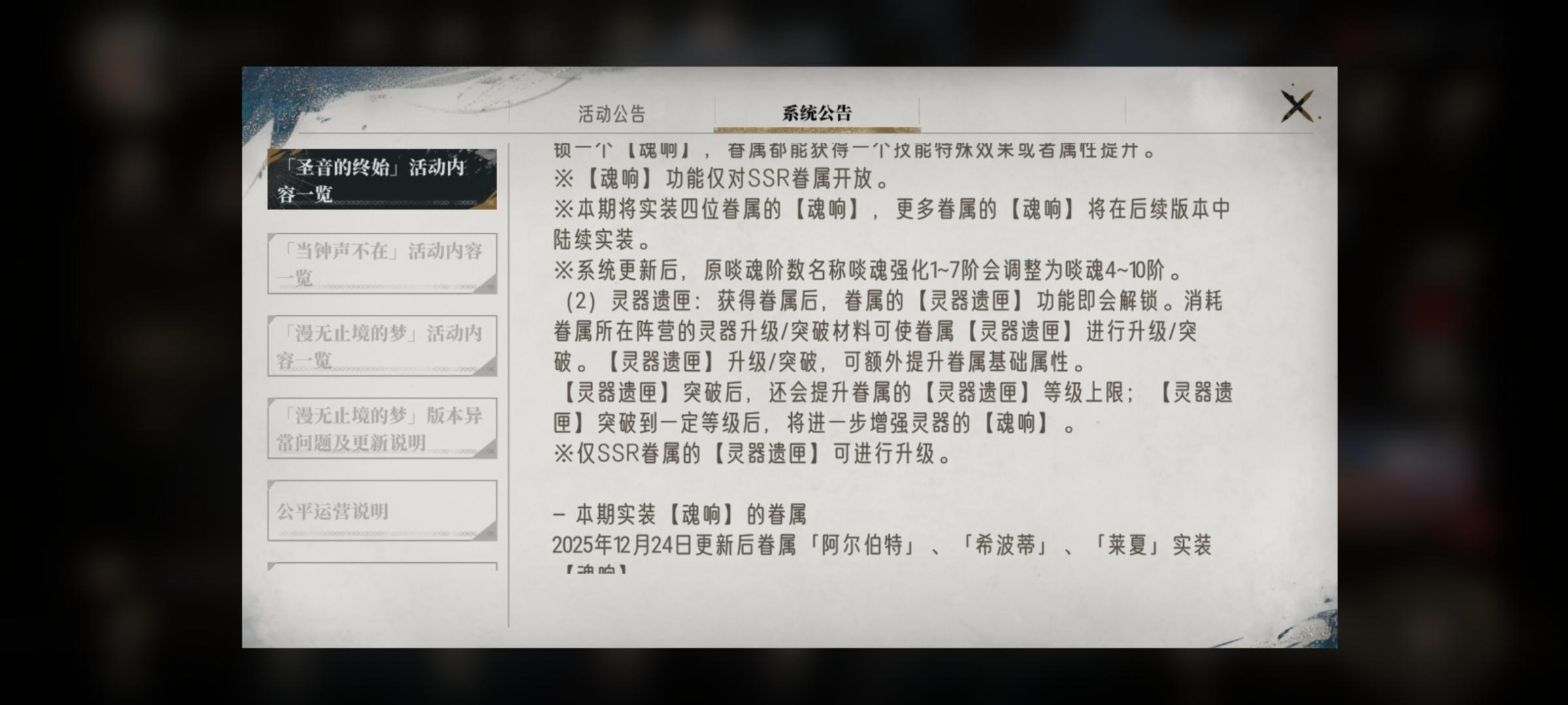 当银血即将燃尽最后的辉光,她屹立于“圣战”泥沼的中央:癫狂的信徒如潮水涌来,要将她献祭给黑血的神明;天启的“战争”如阴影附随,要让她成为时序教会崩坏的开端……此刻,曾经孤高的战士终于垂下眼眸,握紧那些托付而来的手:一场承载着誓言与归途的远征,即将撕破永夜。 《银与绯》「圣音的终始」版本即将于12月25日10:00开启!在圣音的回荡声中,敬请查收这份内容前瞻。✦ 游戏下载 ✦ ✦ 官方玩家