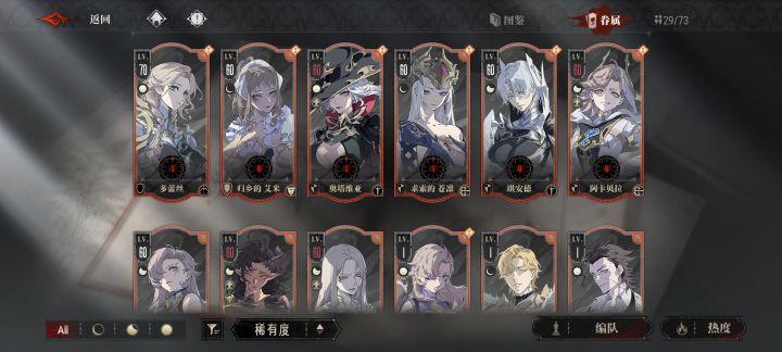 银与绯…是一款让我学会如何打开国际服小开关的游戏,但它同样教会了我要小心卖换色皮的游戏!教会了我要在才过半周年却变更角色战力系统时果断退的游戏!图1️⃣2️⃣:资料展示、进度展示图3️⃣:遗产展示图4️⃣:角色展示图5️⃣:背包展示图6️⃣:战绩战绩