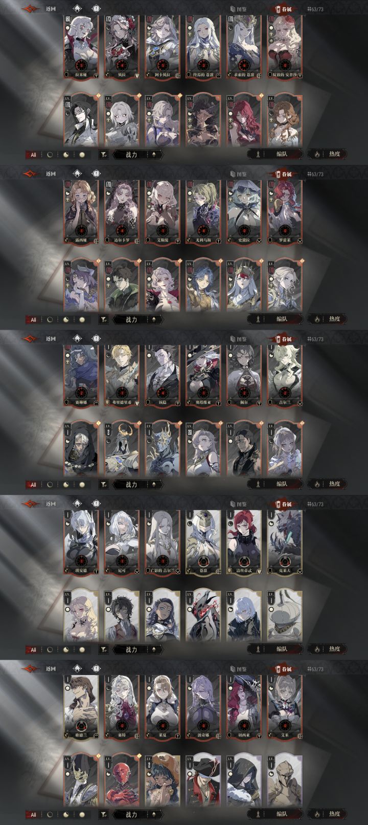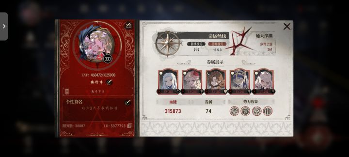 银与绯…是一款让我学会如何打开国际服小开关的游戏,但它同样教会了我要小心卖换色皮的游戏!教会了我要在才过半周年却变更角色战力系统时果断退的游戏!图1️⃣2️⃣:资料展示、进度展示图3️⃣:遗产展示图4️⃣:角色展示图5️⃣:背包展示图6️⃣:战绩战绩