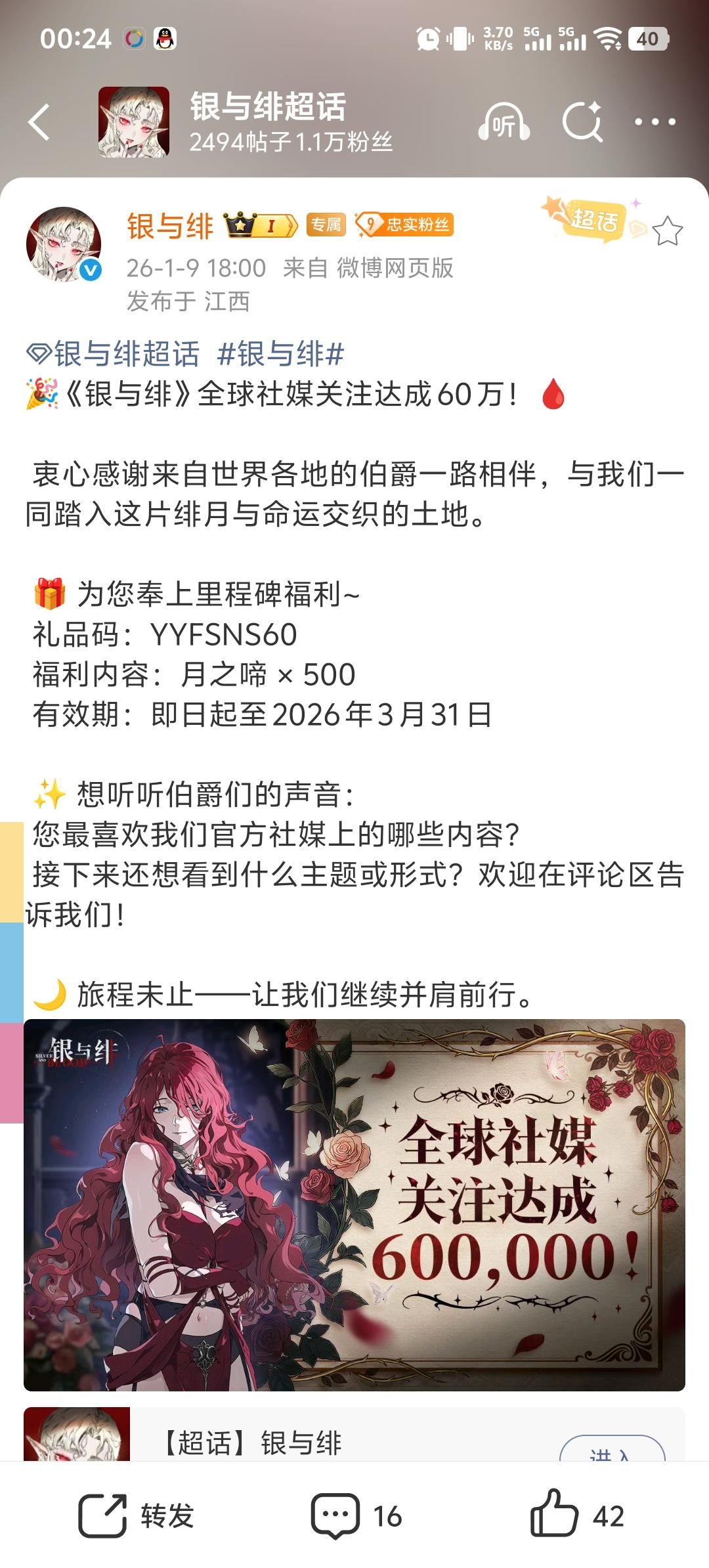YYFSNS60顺便调查一下,大家除了TapTap以外,还会关注哪些平台的银与绯的内容?