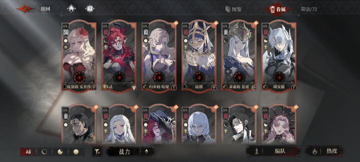 银与绯我们需要注意:第一就是角色配队是传统意义上的奶T输出,根据不同副本改变定位人数;第二是月相机制,通过分别使用新月、残月、满月的技能后,会进入持续10秒的血月状态,期间所有角色提升25%增伤,花费点数全部减一,作为输出的关键buff,所以配队还需要根据三种月相花费的点数合理分配;✅️阵容详细讲解:游戏角色分为4个阵营,6种职业;分别为始祖阵营、教会阵营、夜族阵营、王国阵营;历战者(有输出