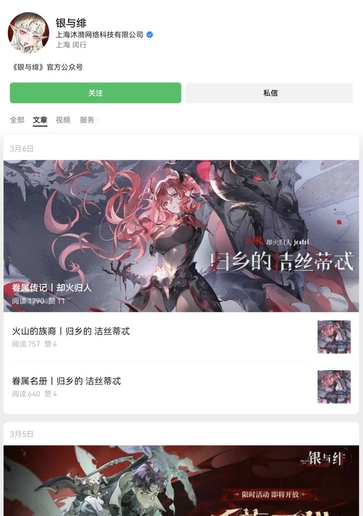 沐瞳二次元卡牌手游《银与绯》近期被传“可能要没了”的信息不知道游友们注意到没有。有玩家发现,官方微博和官方微信信息更新停在3月6日,官博停在3月12日,当期版本结束已超一周仍无新版本消息。游戏内活动停滞,只剩基础界面。尽管沐瞳相关人士称“正常运营”,但社区已出现大量告别式评论,恐慌情绪一直在蔓延:这款曾凭借哥特幻想画风、西木康智配乐、Milet主题曲惊艳开局的游戏,似乎走到了尽头(?)。《银与绯