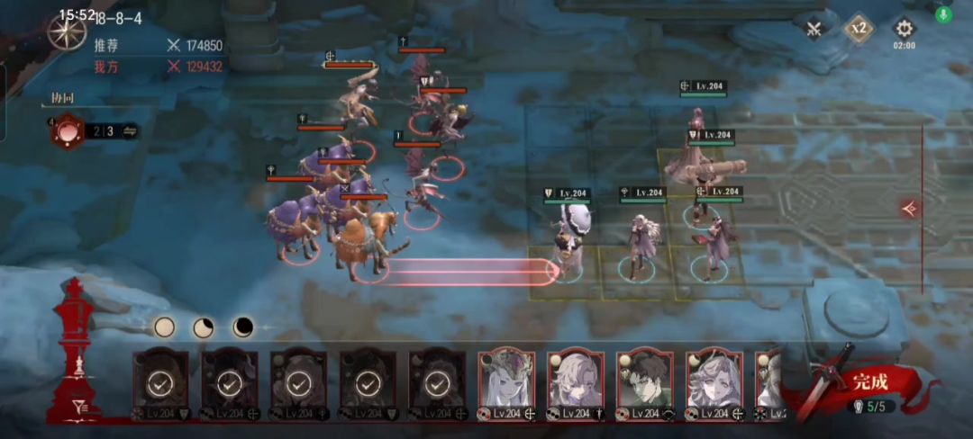 硬件:黑夜队全零命加一高命奶盾; 装备技能:全员全技能4级,装备全红即可,扛不住给衣服升级加血量; 未来遗产:三个残月给4级永生之果,达尔卡罗给海神之颅,白毛姐姐随便带一个把战力提一提即可; 凹法:奶盾负责开局承伤,只要黑毛妹妹开大前黑夜队全活着就行,奥义顺序:黑毛→白毛→达尔卡罗 三个人循环,白毛尽量等潜血满了再开大,伤害会高一些。 这么打能越战35%,但18-9没凹过去,应该是战力差太多,拼尽