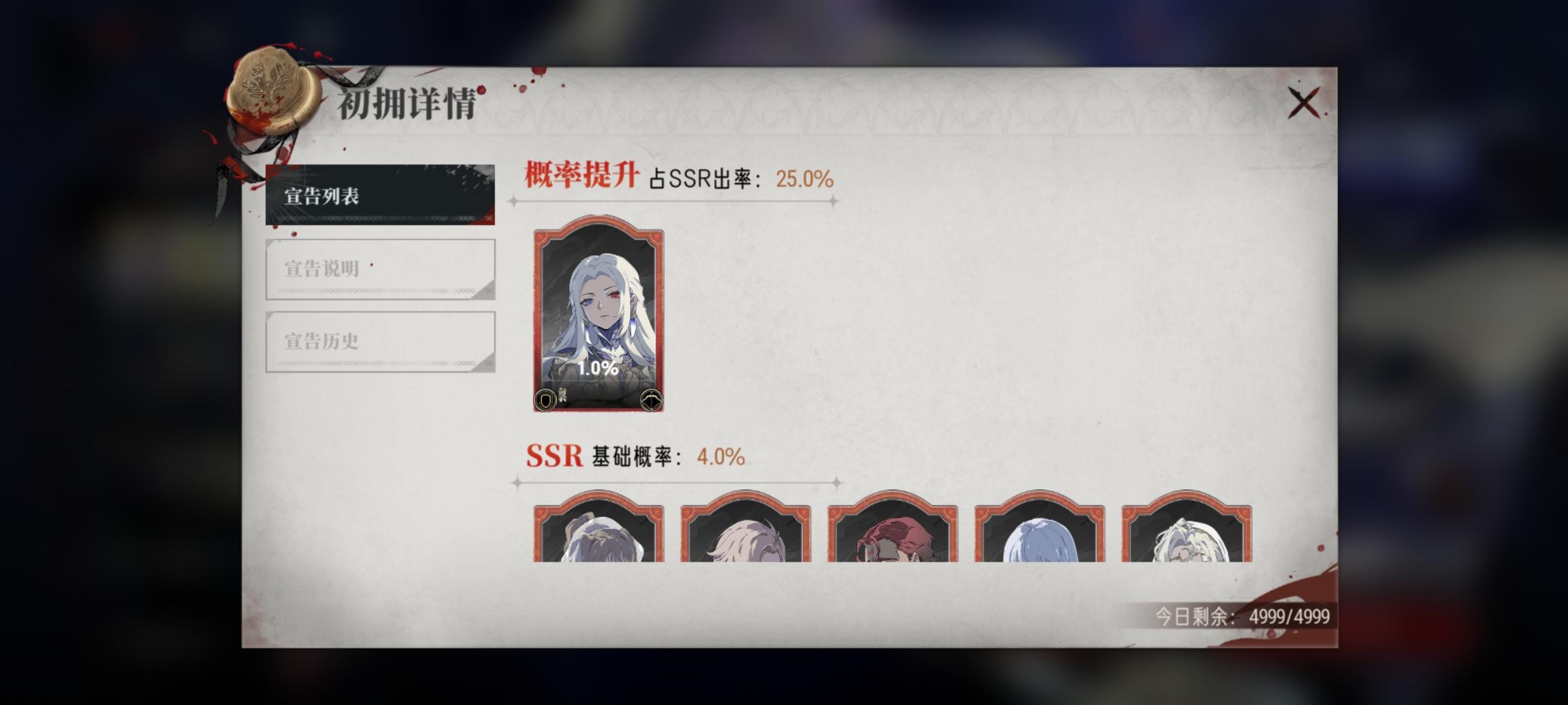 半周年版本看来入坑了不少小白,这里简单说一下几个池子【亘古的旗誓】-(限时UP池),始祖琼安为新体系话誓人,目前强度我看挺一般的,但必须抽取一张。后续新体系肯定要补充新体系C位的卡。【蜃楼的后斋】-(上版本限时up池),黑夜体系的前排承伤,捞一张停手【圣临的择选】-(免费十连池)这里必选终苍,老牌强力大C,开服至今断档领先的神,跟水贝搭配后,这个游戏似乎可以改名叫贝与苍