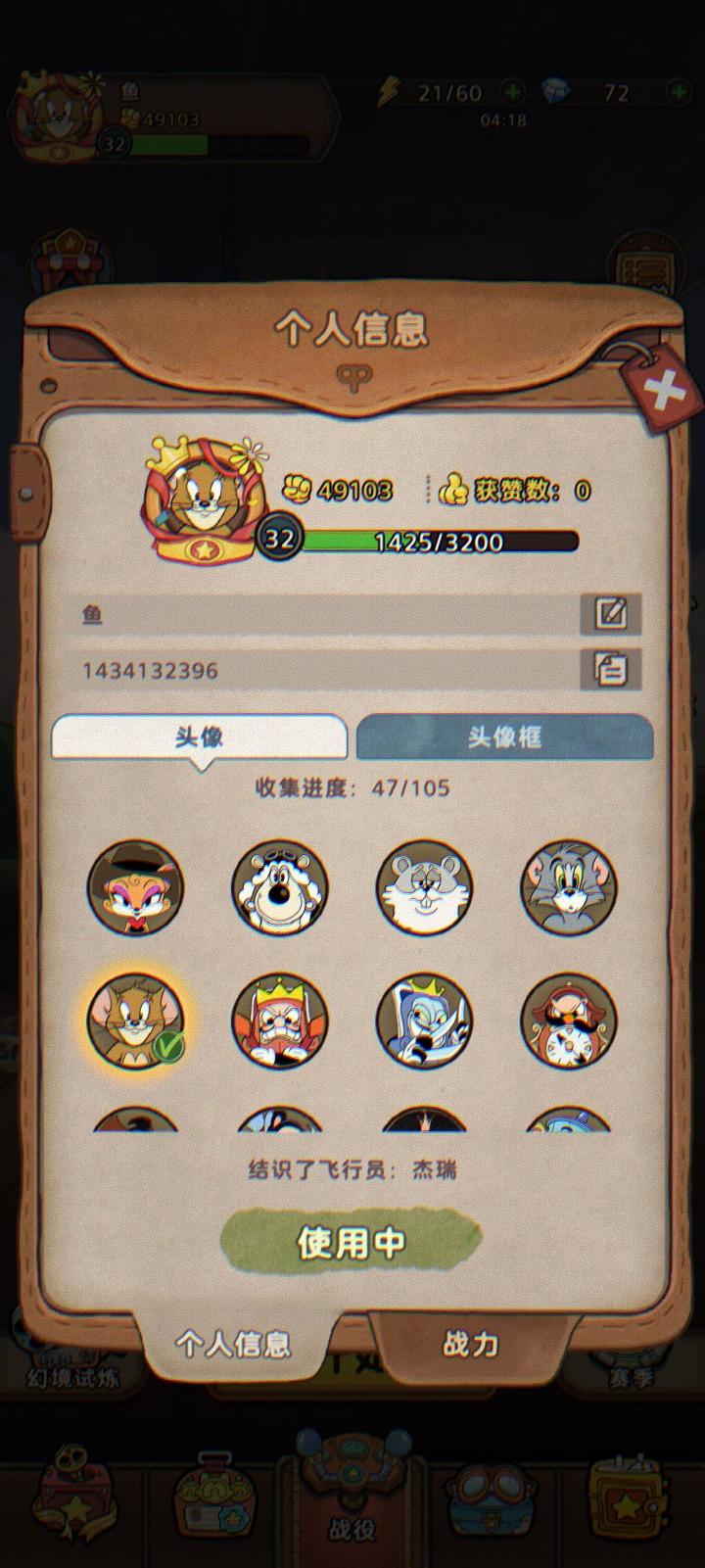 小编是8月30号开始玩儿到今天为止。已经玩儿了21天,小编是一直是零氪的,今天毕业了。因为猫和老鼠都有了,猫是第52抽出的,老鼠是第65抽出的。猫和老鼠都是一星专属僚机。艾尔莎是两星专属僚机。水属性的查理也满共鸣了。莱特卡牌只差一只汤姆猫。天外来敌段位也上天空之王了。时光迷途也上前20了。发个图纪念一下,零氪的玩家能达到我这样的练度,实际上也就是毕业了。再想升星那就要充钱了。其