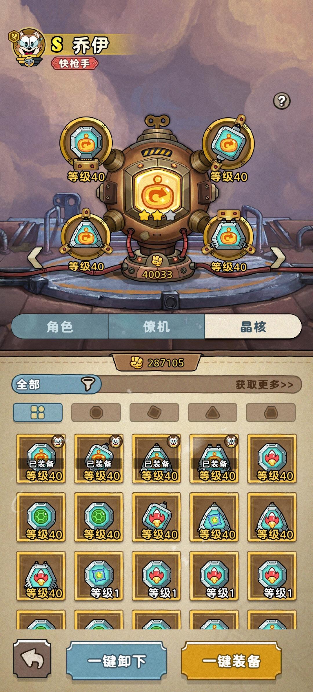 红核一个都不出,这概率诗人呐?只有乔伊和艾尔莎两个人打得出伤害,别的没潜能基础攻击不够,打BOSS直接不掉血。总之,赶进度也算是告一段落了,接下来慢慢打困难、补星、补收集,然后等开新关(应该会有新养成模块吧)我感觉乔伊同配置比艾尔莎厉害啊,后面关卡怪和红弹真的很多,乔伊爽吃,艾尔莎大招没无敌有时候开了也难受。最后赶紧给我爆点红核,这概率诗人吗?#发条总动员