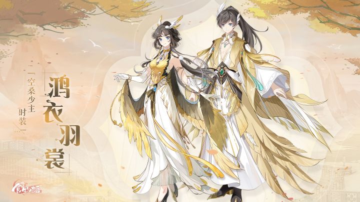 ☆「少主专属时装· 鸿衣羽裳」☆ 金翎光夺目,灿羽熠生辉。少主遥望天边,衣袂飘飖随风举,似振翅高飞,青云万里任翱翔。少主为了纪念在九天园圃中羽翼化形的奇遇,想要委托鸡茸金丝笋做一件羽族时装。 ☆温馨提示☆ 活动期间,每日首次消耗体力通关任意关卡后将会开启【金羽织锦】活动,完成活动关卡可获得「金丝翎羽」。收集「金丝翎羽」达到指定数量即可制作少主专属时装「鸿衣羽裳」。