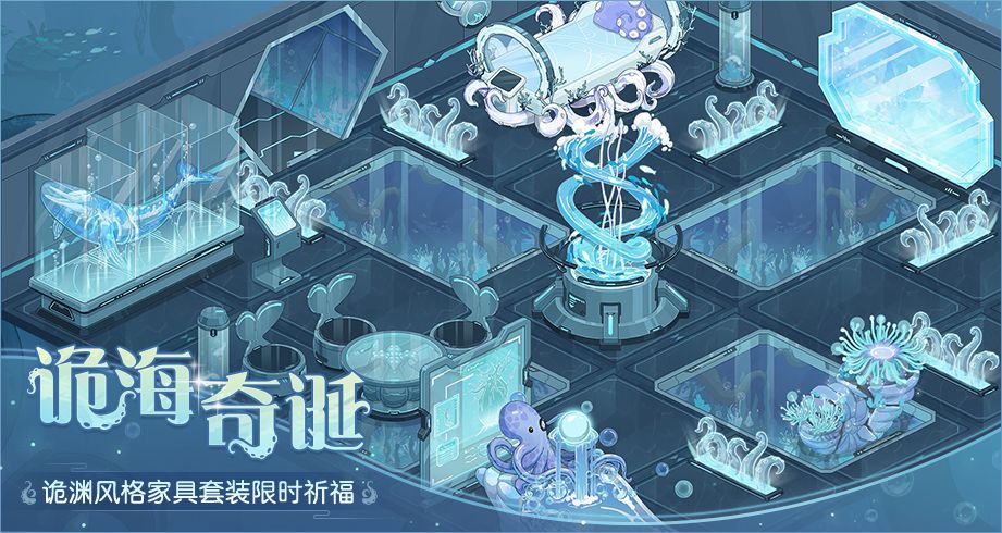 只见妄诞在荒芜里丛生,长满獠牙的口器里绽放出妖异。那是比海底更深遥广袤的水域,是世界另一个尽头的废墟。「诡海奇诞」诡渊风格家具套装即将于7月6日更新后与少主见面~