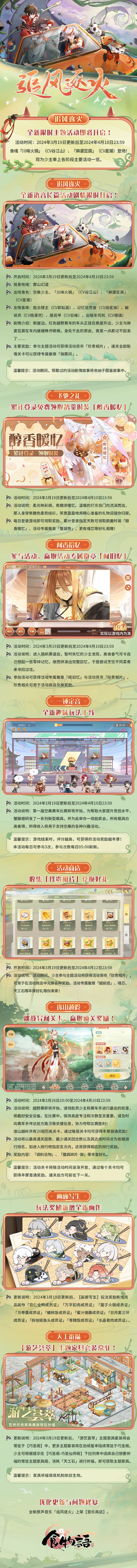 #追风逐火# 更多具体活动内容请戳长图,详细信息请以游戏内版本为主~ 更多后续更新公告、活动内容及最新消息请关注《食物语》游戏内公告、官网