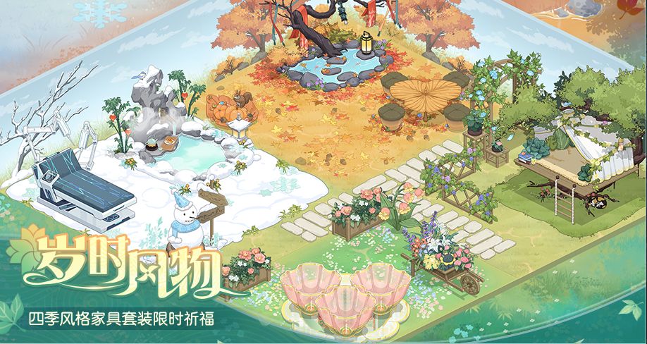 春花烂漫,夏叶聆风,秋果香甜,冬雪素净。四季风物,轮转不息,此为人间。 「岁时风物」四季风格家具套装即将于8月10日更新后与少主见面~
