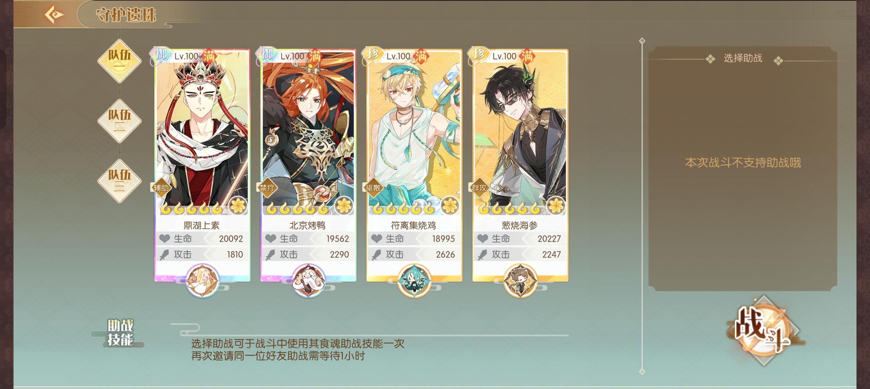 这期有不屈,可以上霜冻压制之类的,如冰糖湘莲,鼎湖上素,浪花东星斑,玻璃鱿鱼等,还可以上驱散,比如符离集烧鸡等这期换了新角色试试水(二队伍里)前两队可以打过30+输出高还是 三队伍PS:最近太忙,昨天想起都快12点了,太晚就没弄#守护遗珠 #食物语陪伴版 #食物语攻略