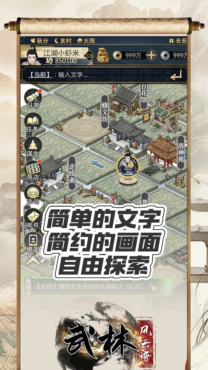 炎炎夏日来武林避暑,与高手切磋拜师学武,飞石射鱼采集草药,品尝佳肴美酒纵马狂奔,与英雄侠女除恶扬善,所有的江湖奇遇,都是美好的安排,快来一起闯荡吧!钓鱼攻略1、拉竿时机(拉钓起鱼概率大)出现其它请找准时机拉杆文字,可以不用理,等出现以下这两条文字迅速拉竿,钓到鱼的概率大。出现这两条时机文字马上拉竿,不拉竿会错过拉竿时间,鱼会脱钩溜走:鱼漂正在剧烈地上下起伏!!!鱼漂突然飘了上来!!!2
